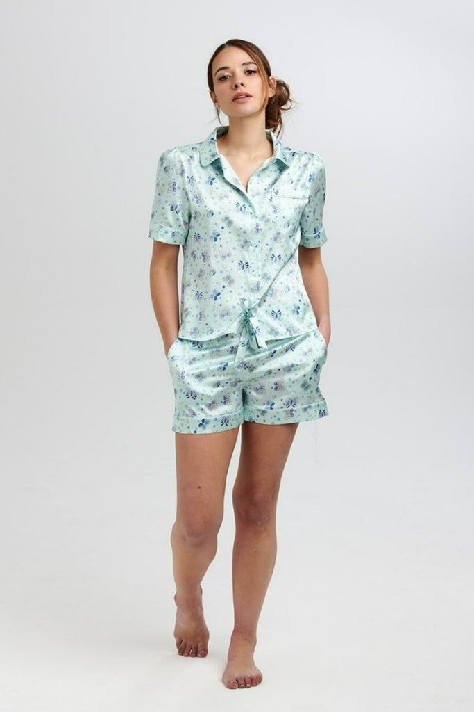 Our Rosie Glacier Butterfly Silk short provides an alternative for those who feel the heat in bed, but are perfect for lounging around in too.