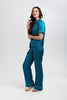 The perfectly cut Poppy Rainforest Silk Trouser, finely tailored to give a closer fit but with enough stretch to allow for easy movement in bed. Made from the finest 19 momme silk and trimmed with contrasting Honeybee piping with the addition of a silk waist tie for extra comfort.
