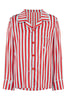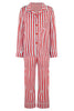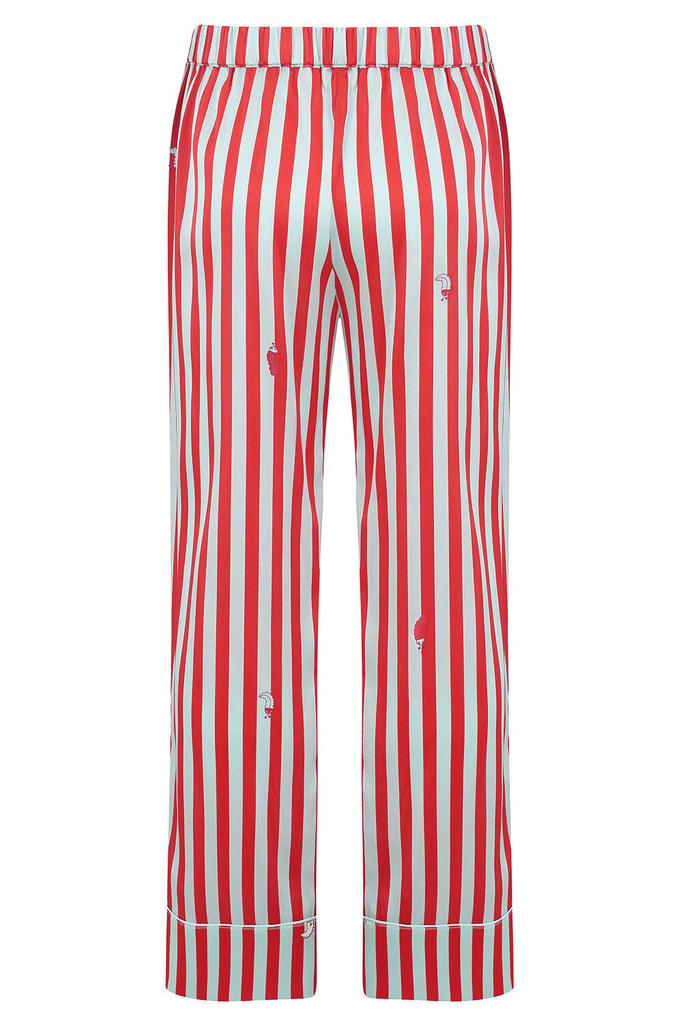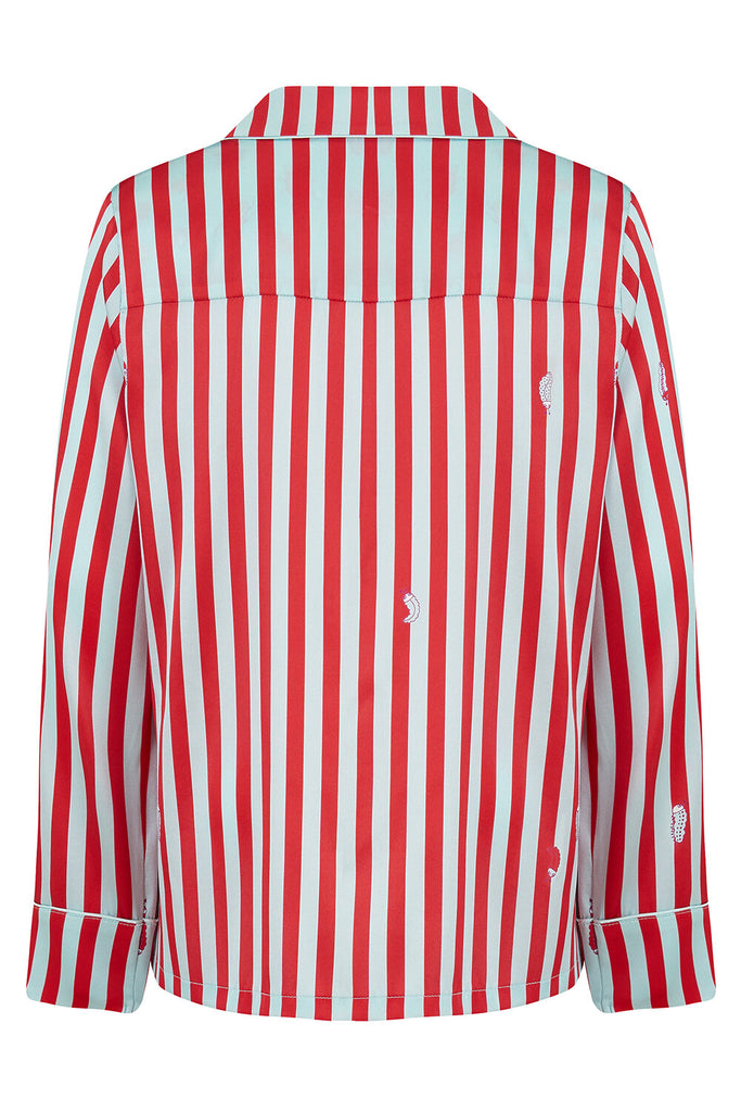 The Teddy pyjama set in vibrant Ladybird Stripe is made from the finest 19 momme silk, trimmed with Glacier piping and a little extra stretch for the perfect fit.