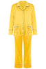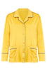 Our classic pyjamas in Honeybee are made from the finest 19 momme silk, trimmed with Peacock blue piping, adjustable waist ribbon and a little extra stretch for the perfect fit.