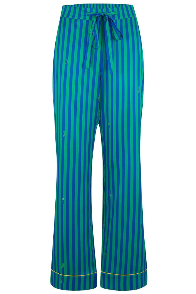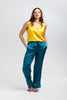 The perfectly cut Poppy Rainforest Silk Trouser, finely tailored to give a closer fit but with enough stretch to allow for easy movement in bed. Made from the finest 19 momme silk and trimmed with contrasting Honeybee piping with the addition of a silk waist tie for extra comfort.